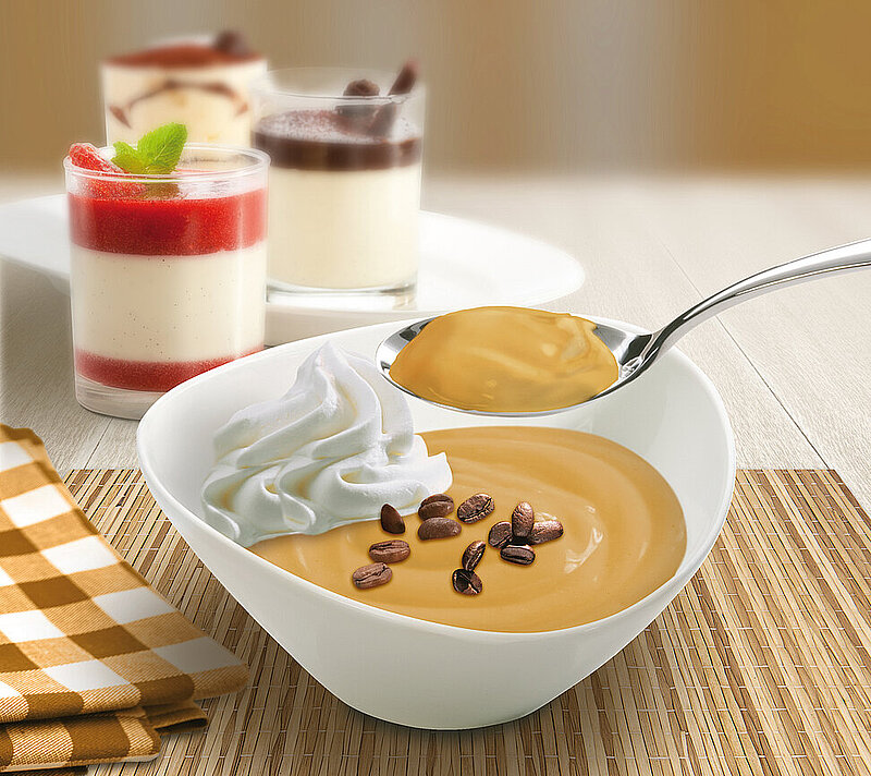 Kräftiger Espresso und zarter Milchpudding machen dieses Dessert zum wahren Genuss für Kaffeeliebhaber. Mit Sahne verfeinert überzeugt Naarmann’s Cappuccino Pudding durch vollen Geschmack und einer cremigen Konsistenz.