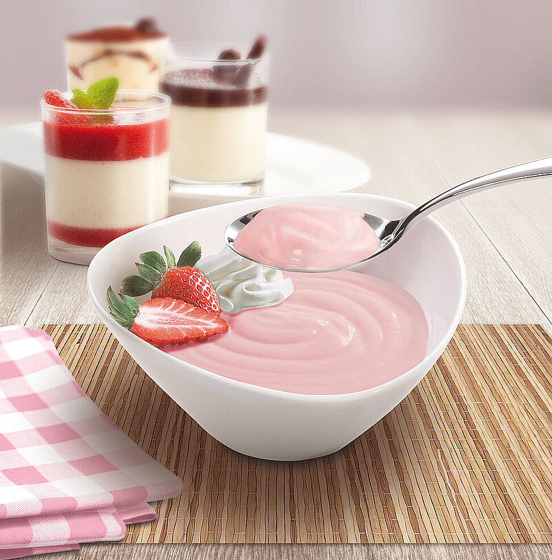 Der Klassiker Erdbeere, kombiniert mit einem sahnigen Pudding