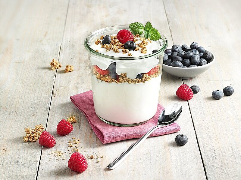 Cremige, feine Konsistenz und frischer Joghurtgeschmack. Ideal zum Anrichten von Desserts mit frischen Früchten, als Ergänzung zum Frühstücksbuffet und für die Kreation von Dressings.