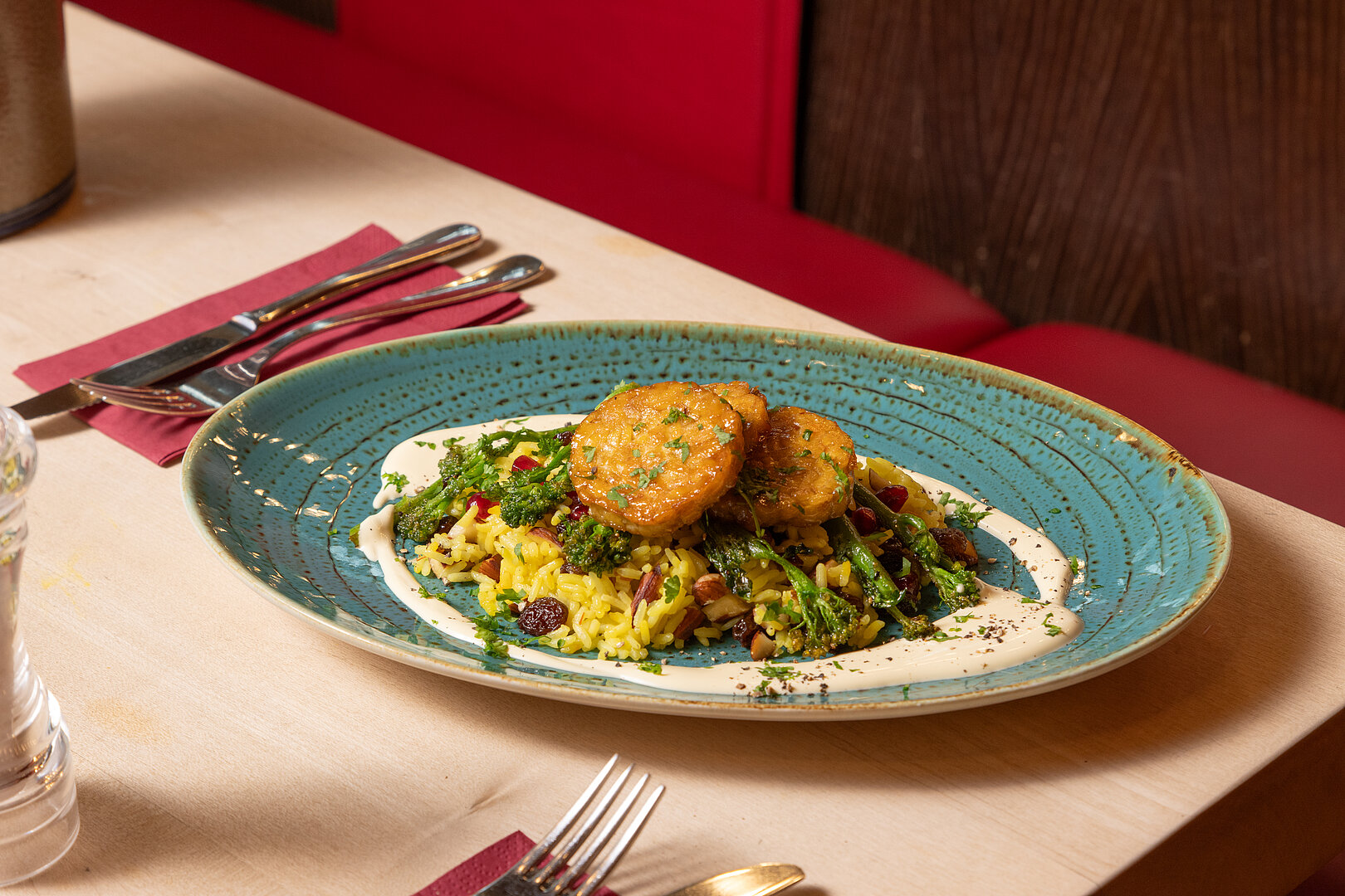 Hierzu passt Safran-Reis mit eingelegten Rosinen und gerösteten Mandeln