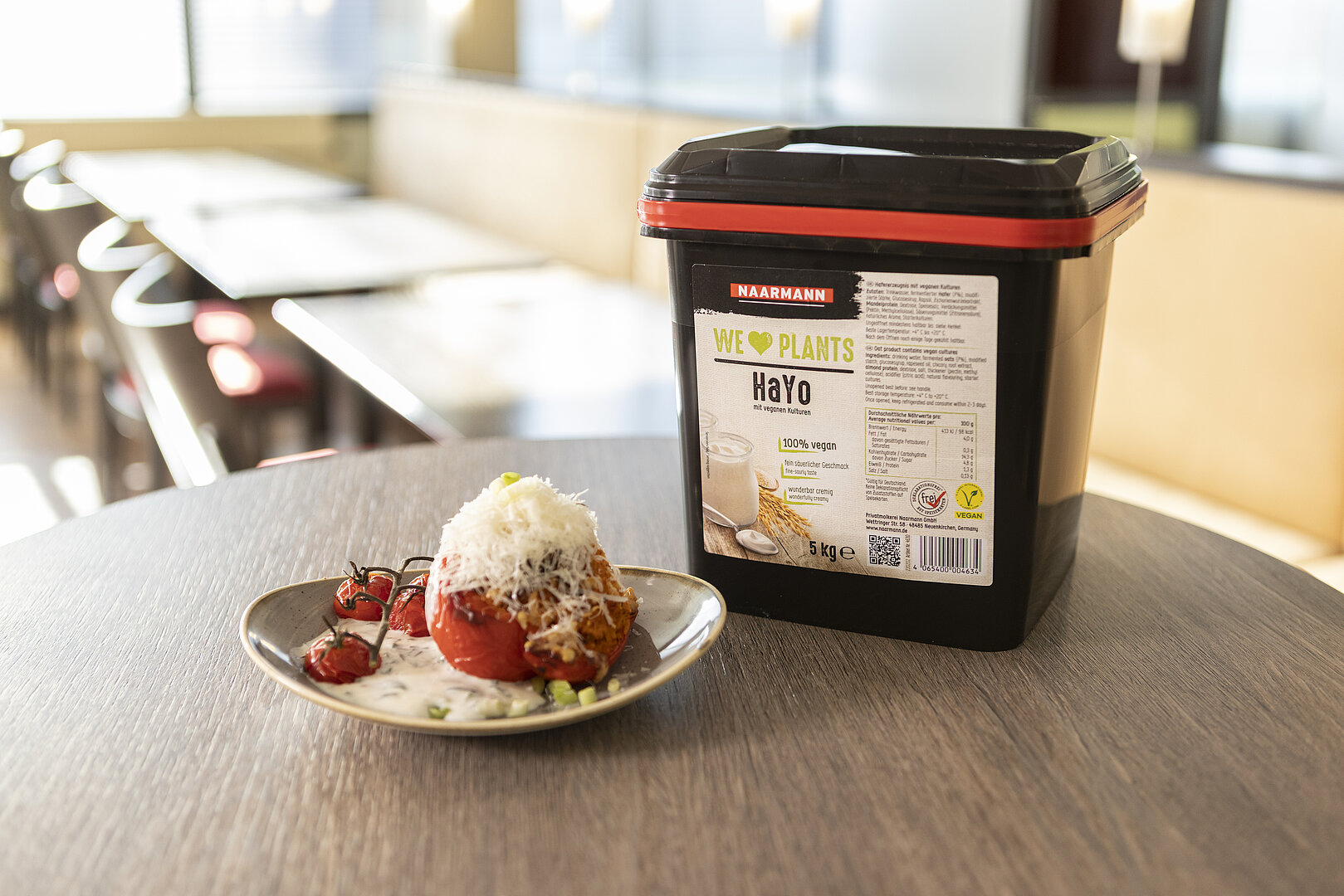 Den Hayo, die Minze, Zitronensaft und -schale verrühren. Mit Kreuzkümmel, Salz, Pfeffer und Zucker abschmecken.