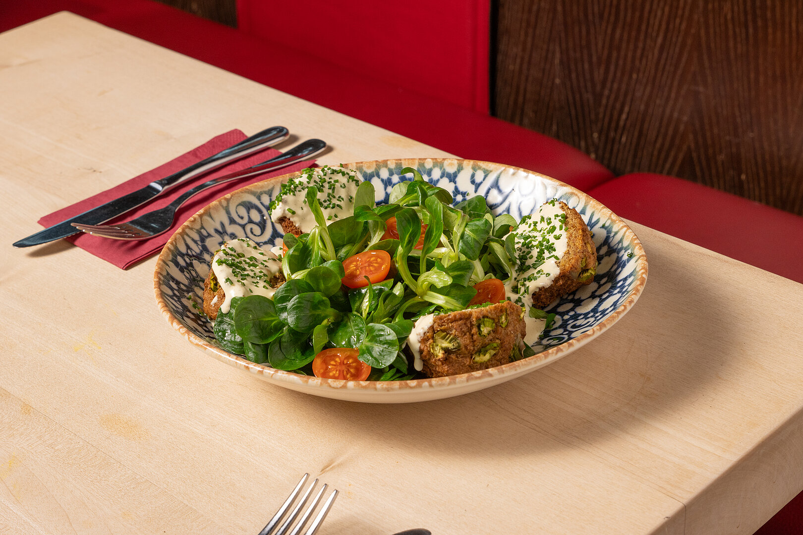 Als frische, knackige Beilage zu den Muffins einen marinierten Feldsalat servieren.