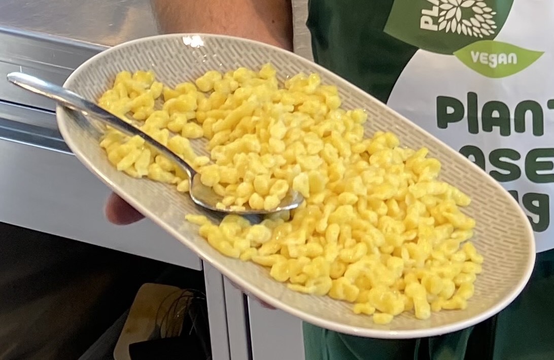 Nehmen Sie die Spätzle mit einem Schaumlöffel aus dem Kochwasser und schrecken Sie die Spätzle mit Eiswasser ab oder geben Sie die Spätzle in einen Schnellkühler.